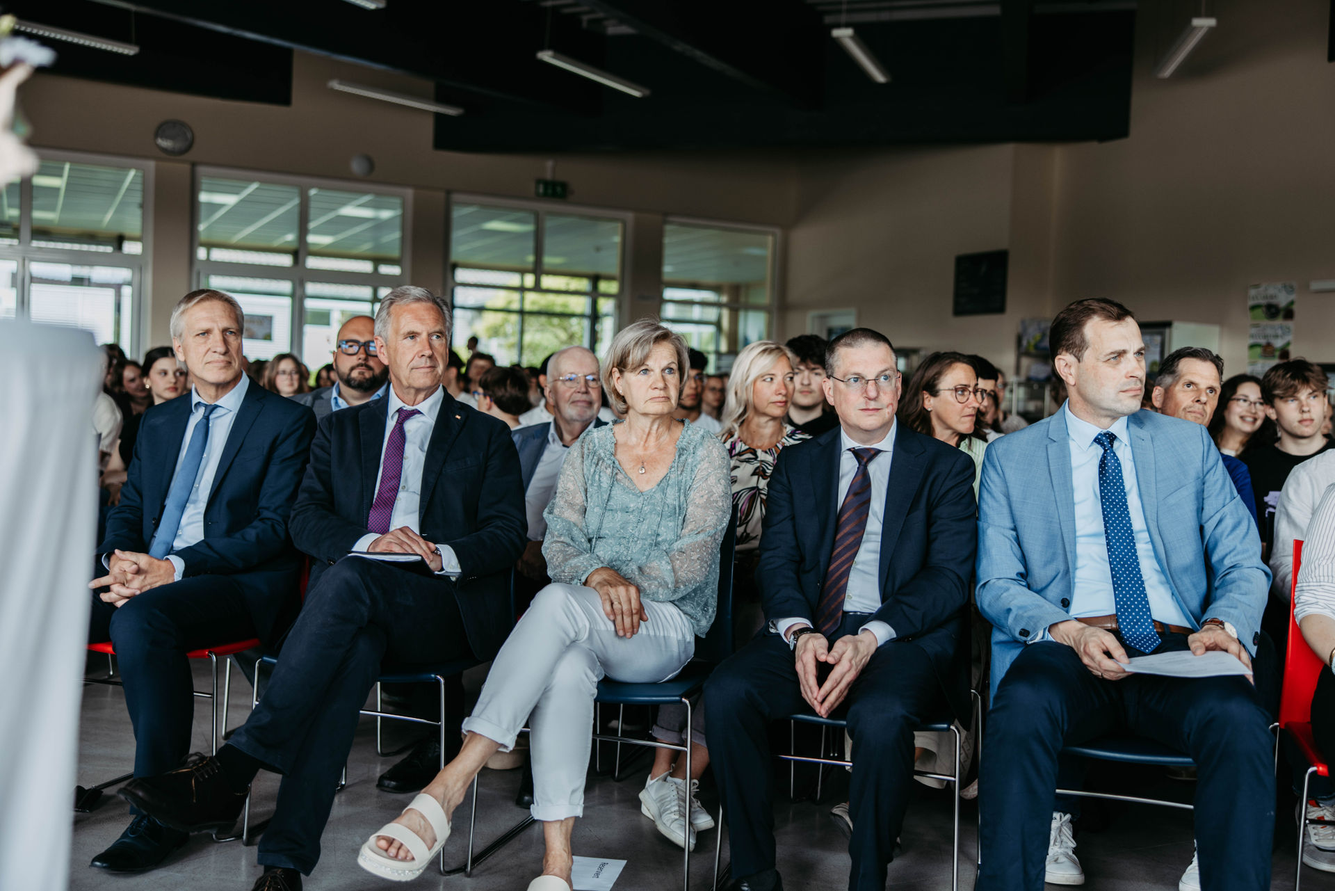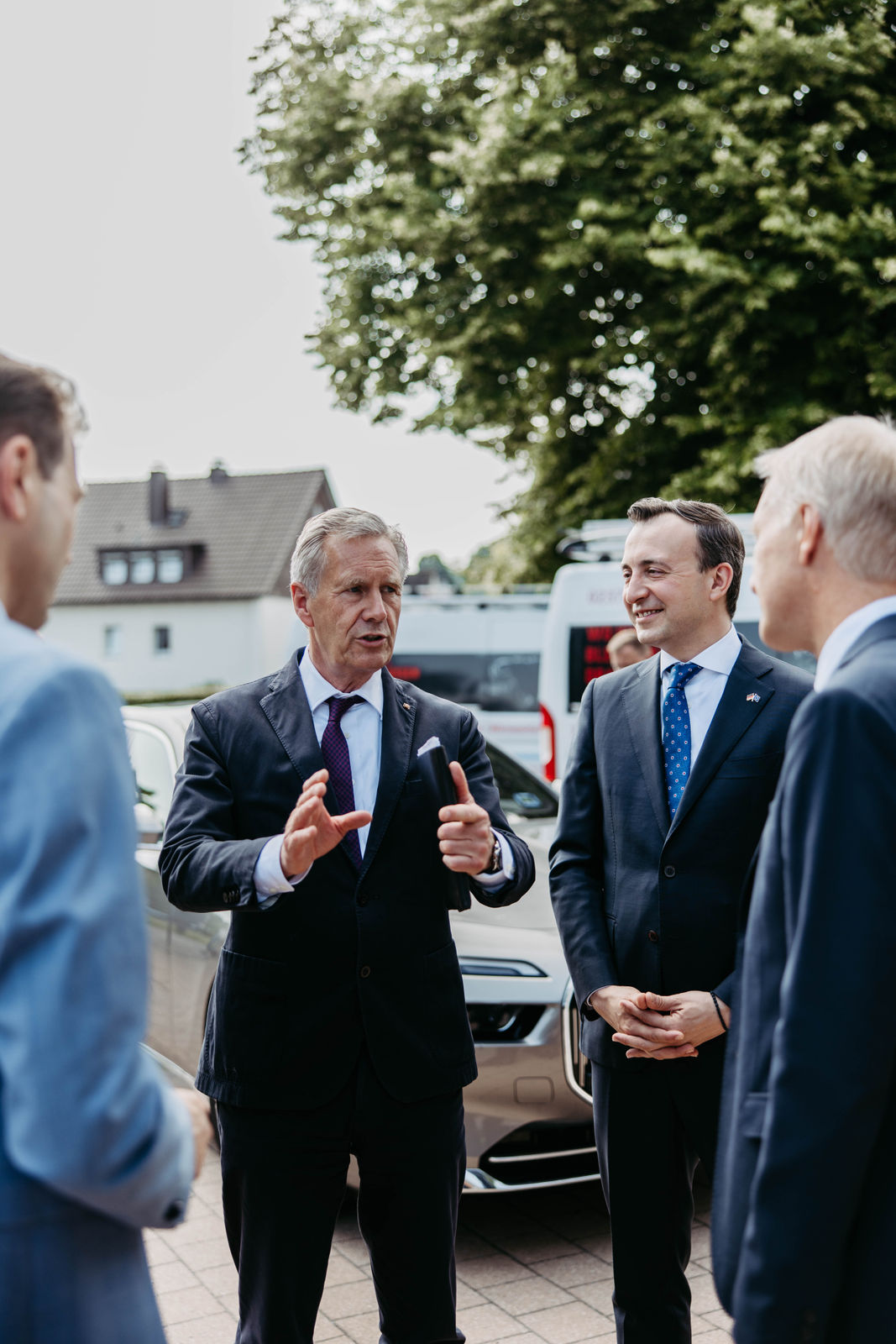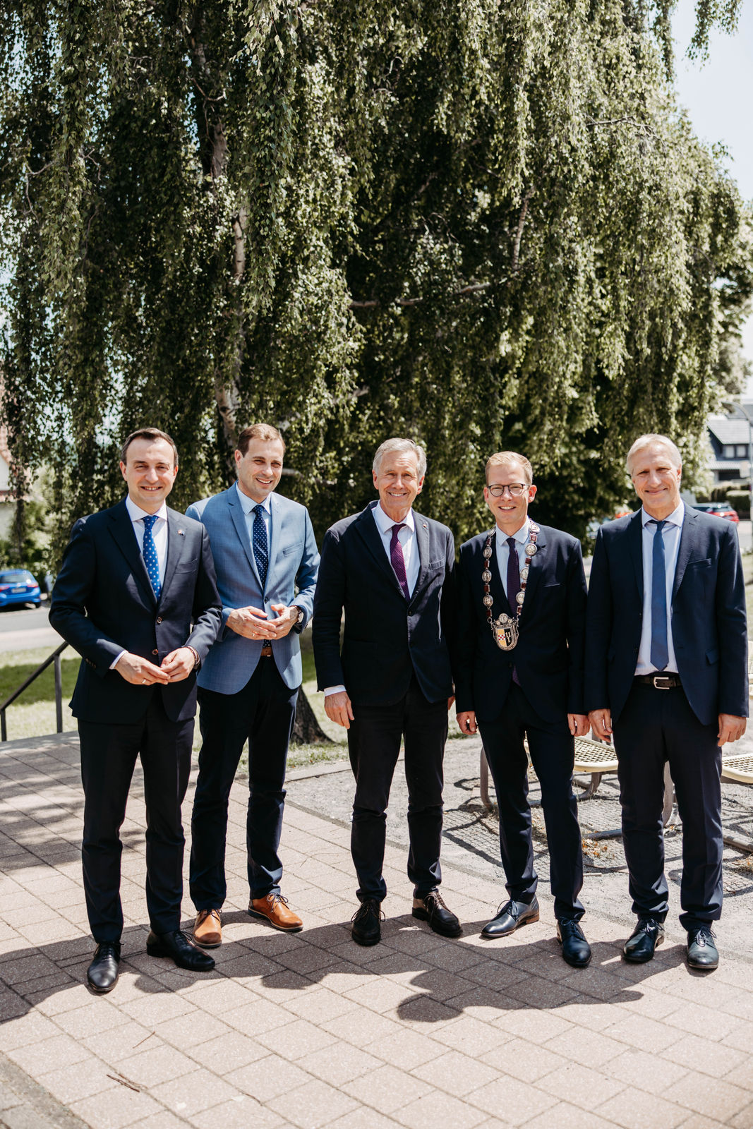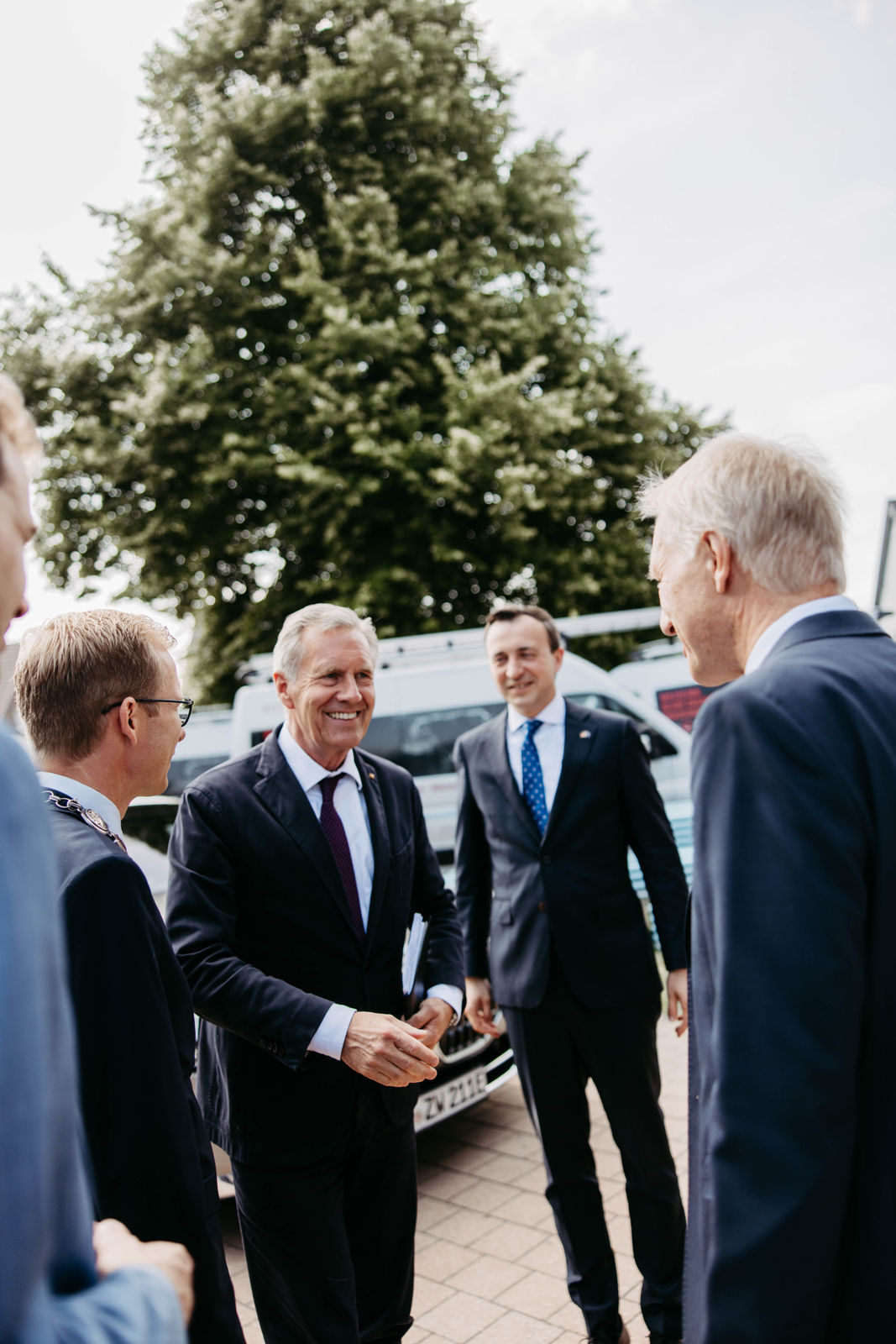 Bürgermeister Christian Schweitzer, Schulleiter Professor Dr. Jörg Trelenberg und Martin Gropengießer als Politiklehrer nahmen Christian Wulff und den Bundestagsabgeordneten Paul Ziemiak in Empfang, und nach einem netten Smalltalk ging es dorthin, wohin es den früheren Bundespräsidenten auch zog: Zu den Schülerinnen und Schülern, die gespannt auf den Besuch des 65-Jährigen gewartet haben. Besonders bei Marlene Jäker und Martin Bauer aus der Klasse 10b und Samuel Obst aus der Stufe 11 dürfte die Nervosität groß gewesen sein, denn sie stellten stellvertretend für ihre Mitschüler und Mitschülerinnen die Fragen, die alle zusammen im Unterricht vorbereitet hatten.
