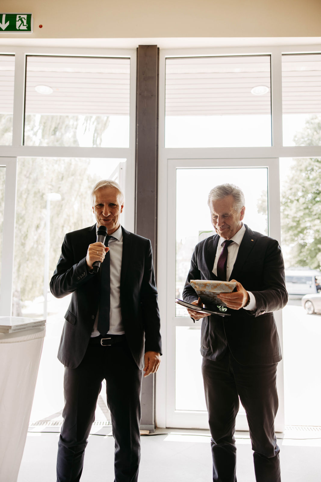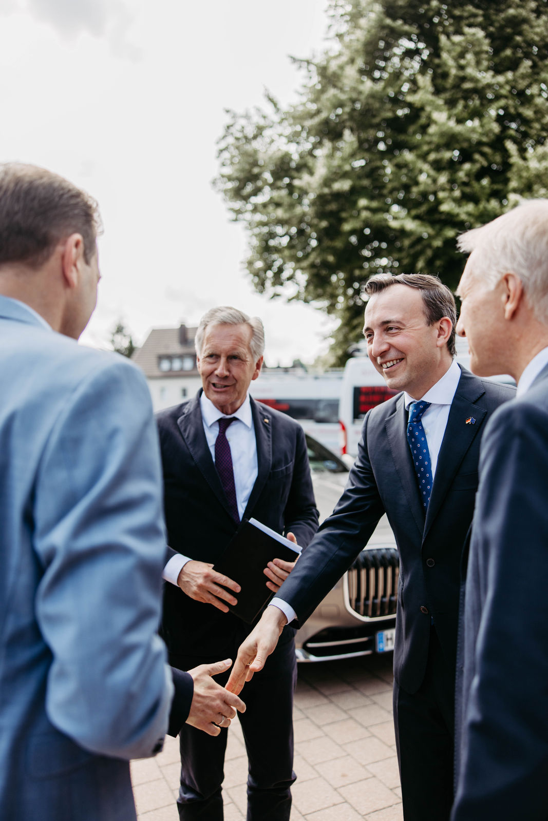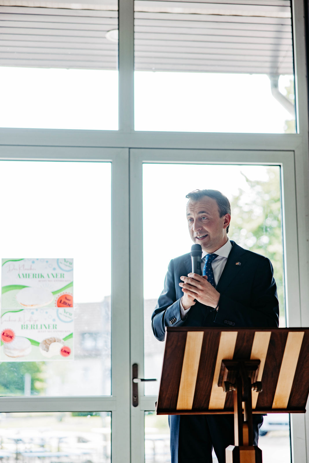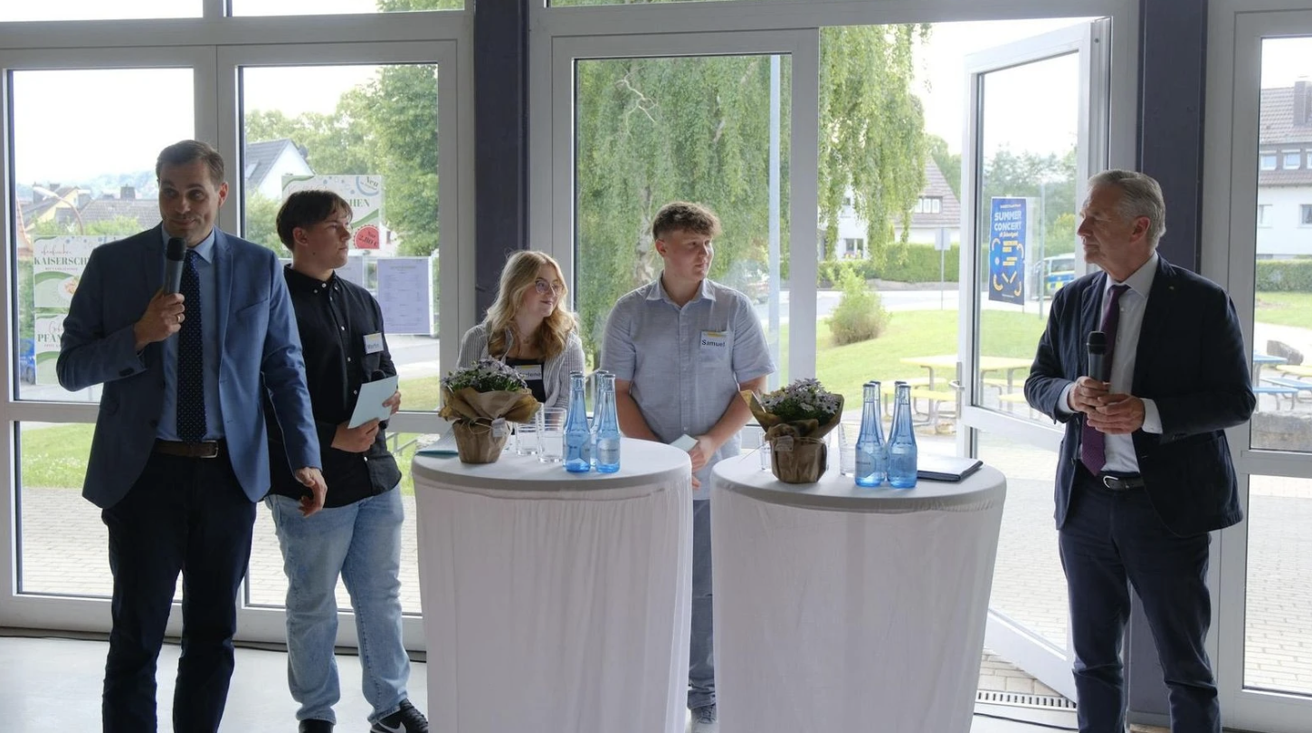 Bürgermeister Christian Schweitzer, Schulleiter Professor Dr. Jörg Trelenberg und Martin Gropengießer als Politiklehrer nahmen Christian Wulff und den Bundestagsabgeordneten Paul Ziemiak in Empfang, und nach einem netten Smalltalk ging es dorthin, wohin es den früheren Bundespräsidenten auch zog: Zu den Schülerinnen und Schülern, die gespannt auf den Besuch des 65-Jährigen gewartet haben. Besonders bei Marlene Jäker und Martin Bauer aus der Klasse 10b und Samuel Obst aus der Stufe 11 dürfte die Nervosität groß gewesen sein, denn sie stellten stellvertretend für ihre Mitschüler und Mitschülerinnen die Fragen, die alle zusammen im Unterricht vorbereitet hatten.