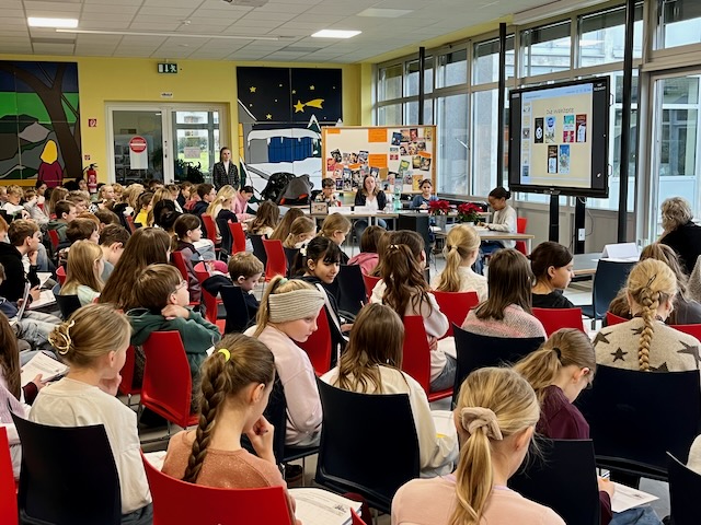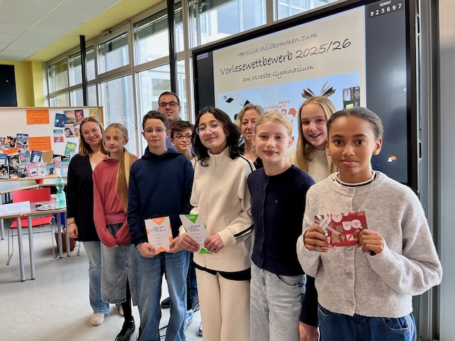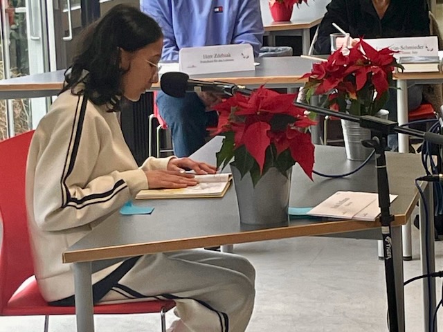 Der Fremdtext „Der Tag, an dem der Opa den Wasserkocher auf den Herd gestellt hat“ von Marc-Uwe Kling forderte von den Vorlesenden, sich in den knappen intrafamiliären Dialogen genau in die Situation der jeweils Sprechenden hinein zu versetzen. Dies gelang Nilüfer Toplu (6c) sowohl mit Lesefreude, als auch mit gutem Vortragsstil am allerbesten und so brachte sie alle Zuhörenden zum Schmunzeln. Deshalb war es kein Wunder, dass sie bei den Zuhörenden klarer Favorit war und schließlich von der Jury zur Siegerin des Wettbewerbs ernannt wurde. Alle sechs teilnehmenden Schülerinnen und Schüler können sich über von der Buchhandlung am Neuen Markt gestiftete Buchgeschenke freuen, die Klassen- und Schulsieger erhielten zusätzlich eine Urkunde. Und für Nilüfer wird es im Februar kommenden Jahres in der nächsten Wettbewerbsstufe weitergehen. Sie freut sich schon darauf.