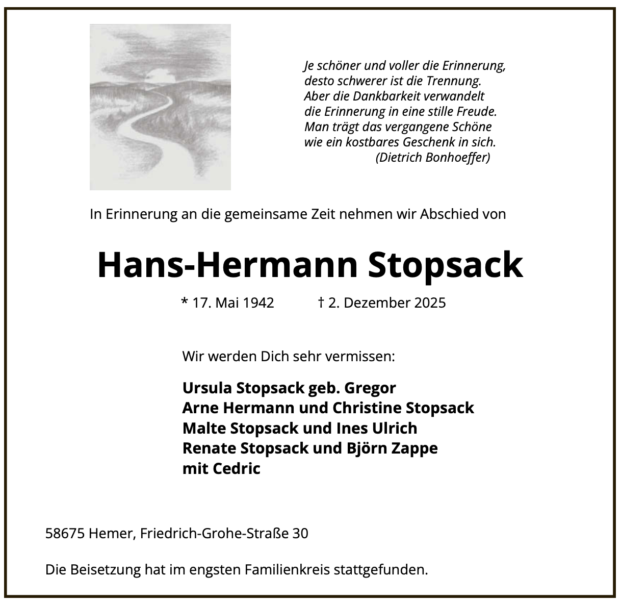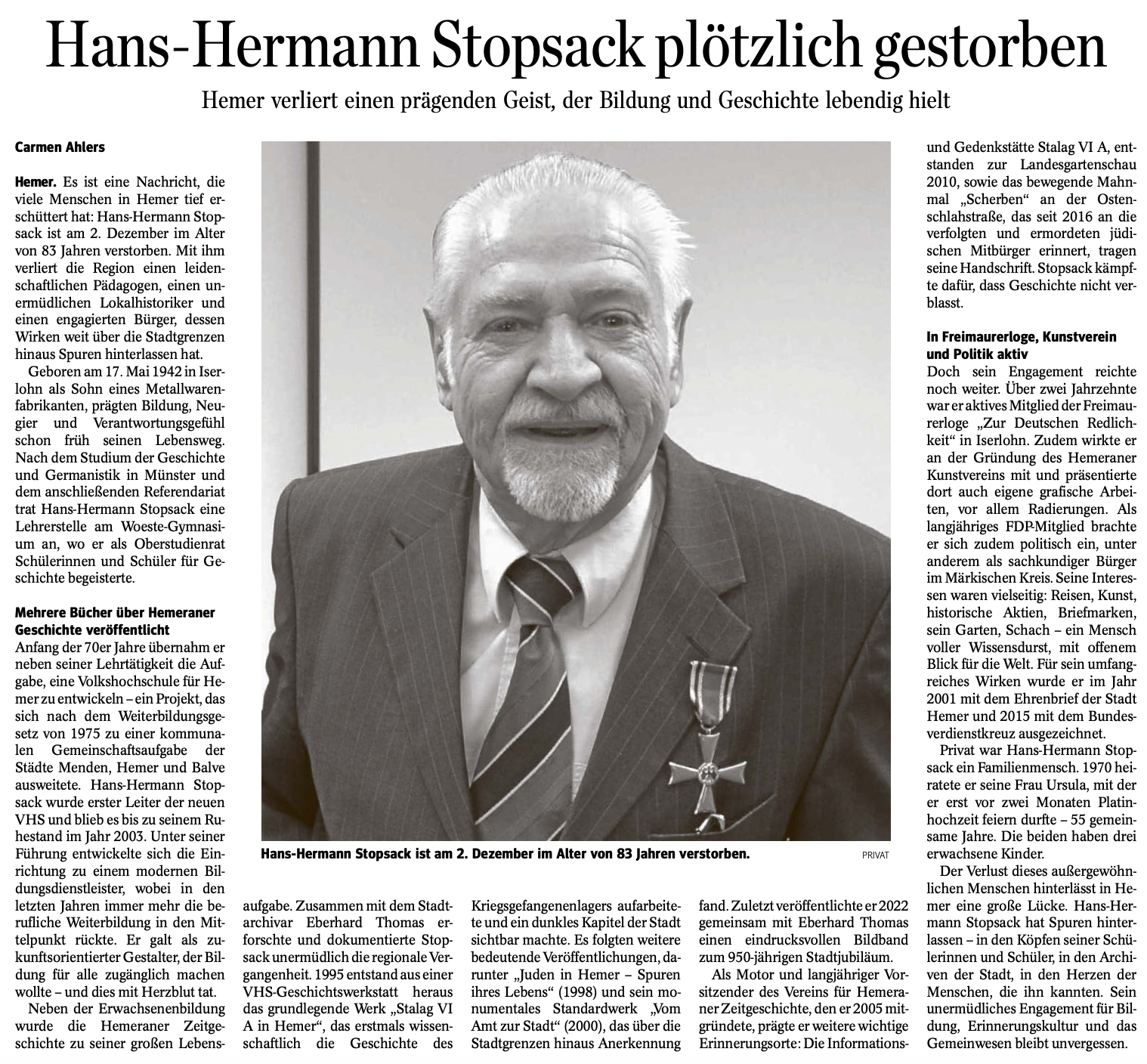 Das Friedrich-Leopold-Woeste-Gymnasium trauert um seinen ehemaligen Kollegen Hans-Hermann