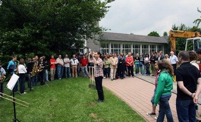 Stadt und Georg Verfuß vom ausführenden Bauunternehmen zum symbolischen