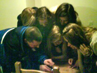 haben, fühlen sich in ihrem neuen Appartement wohl.![]() Fröhlich stimmten sie zu, sich gemeinsam für diesen Bericht ablichten zu lassen. Zweiter Nachtrag zum gestrigen Tag: Der Ansprache an die Stufenversammlung im Innenhof der Herberge folgte die traditionelle informative stimmungsvolle Führung von Arne Hennemann durch das „Alte Dorf Bonneval“.