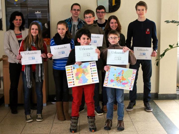 Diercke WISSEN 2013 am Woeste-Gymnasium- Pressemitteilung -Von 352 teilnehmenden Schülerinnen und Schülern des Hemeraner Woeste-Gymnasiums ging im Jahr 2013 der sechszehnjährige Lars Neuhoff aus der Einführungsphase (Stufe 10) als Schulsieger aus dem Geographie-Wettbewerb „Diercke WISSEN” hervor. Mit einer breiten Allgemeinbildung, sehr guten topographischen Kenntnissen und spezifischem Wissen im Bereich des Schwerpunktthemas „Verkehr“ gewann Lars Neuhoff die erste Runde des Wettbewerbs. „Diercke WISSEN”, ein vom Verband Deutscher Schulgeographen initiierter Wettbewerb, ermöglicht den Schülerinnen und Schülern der Jahrgangsstufen 5, 7, 9 und 10 ihr Wissen und Können im Bereich der Geographie im bundesweit durchgeführten Wettbewerb unter Beweis zu stellen. Die Jahrgangsstufe 5 ermittelt dabei Klassensieger im „WISSENS-Junior“. In diesem Jahr sind Emin Aksoy (5a), Sebastian Wetekam (5b) und Kim Buhl (5c) die erdkundlichen „WISSENS-Junioren“ am Woeste. Lars Neuhoff wird in Kürze als Schulsieger am landesweiten Vergleich teilnehmen und würde als Landessieger am Bundesfinale am 7. Juni 2013 in Braunschweig das Land Nordrhein-Westfalen vertreten. Thomas Michael, Geschäftsführer des Westermann Verlags, möchte mit dem Wettbewerb das Interesse an dem Fach Geographie weiter stärken: „Wir brauchen Schülerinnen und Schüler, die mit offenen Augen durch die Welt gehen. Themen wie Klimawandel, Globalisierung und Nachhaltigkeit bestimmen zunehmend unseren Alltag. Um künftige Anforderungen zu bewältigen, müssen wir vor allem junge Menschen für diese Themen sensibilisieren und sie mit Spaß an die Geographie heranführen“. ![]() |