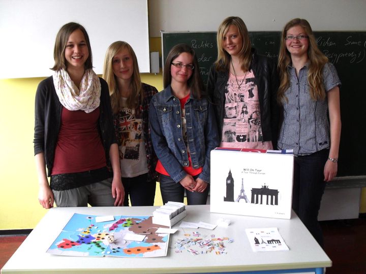 Am Donnerstag, dem 06.06., fuhren fünf Schülerinnen der neunten Klasse des Friedrich-Leopold-Woeste-Gymnasiums zur Preisverleihung des Bundeswettbewerbs Fremdsprachen 2013 zum Gymnasium Kreuzgasse in Köln. Begleitet wurden sie von ihrem Englischlehrer Herrn Ludwig. Die Schülerinnen hatten im Rahmen des Team-Wettbewerbs ein englisches Spiel „Will On Tour – A Tour Through Europe“ entwickelt, in dem man als „Will Morgan“, ein britischer Millionenerbe, durch Europa reist und in verschiedenen Ländern Fragen zu diesen beantworten muss. Die Gruppe hat ca. ein halbes Jahr an dem Projekt gearbeitet und das Spiel dann im Februar zur Bewertung eingereicht. Mitte Mai erfuhren die Teilnehmerinnen des Woeste-Gymnasiums von ihrer Platzierung unter den Top 5 aus NRW und wurden zur Preisverleihung eingeladen. Die Gruppe belegte einen hervorragenden 2. Platz; als Preis erhielten die Schülerinnen, neben einer Urkunde, eine viertägige Londonreise. Zu den Programmhöhepunkten gehören eine englische Stadtrundfahrt und ein Shakespeare-Schauspielunterricht im Globe-Theatre. Fazit: Die Teilnahme an dem Bundeswettbewerb war für die fünf Woeste-Schülerinnen ein voller Erfolg! ![]() Auf dem Bild zu sehen sind v.l.n.r.: Christina Vergara Ossenberg, Melina Thöne, Jana Uhlmann, Sarah Müller und Lara Uhlenküken. Text u. Bild: Andreas Ludwig |