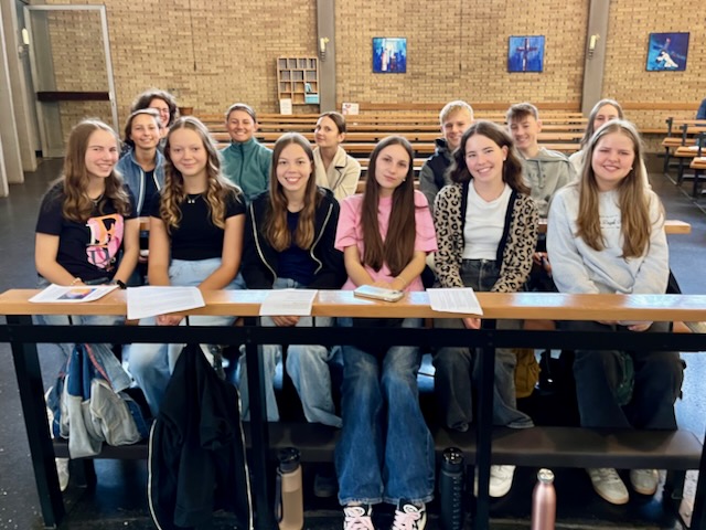 das war das Motto des diesjährigen Einschulungsgottesdienstes der Stufe 5, der wie immer sehr adressatengerecht und liebevoll vom Lehrerteam Natascha Kreft und Ralf Micha vorbereitet und von der Gemeindereferentin Jasmin Rifert-Plogmann in Kooperation mit Pfarrerin Gaby Bach in der Christ-König-Kirche geleitet worden war. Aufhänger war die Emmausgeschichte aus dem Lukasevangelium: Von Ratlosigkeit und Trauer geplagt reisen zwei Jünger Jesu nach dessen Tod nach Emmaus. Unterwegs begegnen sie einem geheimnisvollen Fremden. Sie erzählen ihm von Jesu Tod, dessen Verschwinden, ihrer Trauer, und sie laden ihn zum Abendessen ein. Als er mit ihnen das Brot bricht, erkennen sie in dem Fremden plötzlich Jesus, der sogleich verschwindet. Überwältigt und glücklich kehren die beiden Jünger nach Jerusalem zurück, um von der Erfahrung zu erzählen. Es ist eine Geschichte, die zeigt, dass man sich in Traurigkeit und Verzweiflung verlieren kann, aber auch, dass wir immer in Gottes Gesellschaft sind und diese uns Hilfe, Mut und Zuversicht spendet. ![]() Viele Kinder haben die Grundschule schweren Herzens verlassen und empfinden nun, zu Beginn der 5. Klasse an der neuen, weiterführenden Schule Unsicherheit. Aber wie Gott zu den Jüngern gekommen ist und ihnen wieder Mut und Zuversicht verliehen hat, so ist Gott auch bei den Fünftklässlern in ihrem neuen Lebensabschnitt. Begleitet wurde dieser Abschnitt des Gottesdienstes unter anderem von Liedern wie „Wo zwei oder drei in meinem Namen versammelt sind“ und „Halte zu mir, guter Gott“, die mit großer Begeisterung und auch Lautstärke unter der Anleitung von Jörg Segtrop geschmettert wurden.