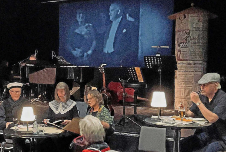 Ehemalige und Aktive des Gymnasiums auf der Theaterbühne ...